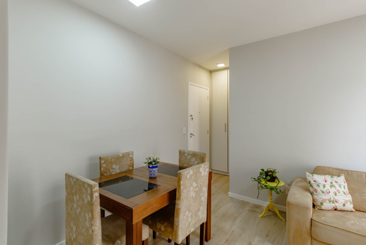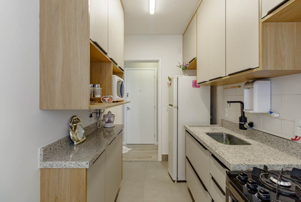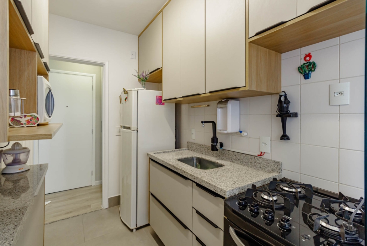 Este apartamento é a combinação perfeita de conforto e praticidade. A cozinha é compacta, mas bem distribuída, permitindo que você prepare suas refeições com facilidade. O banheiro é limpo e moderno, e a sala de estar é o lugar perfeito para relaxar após um longo dia de trabalho.